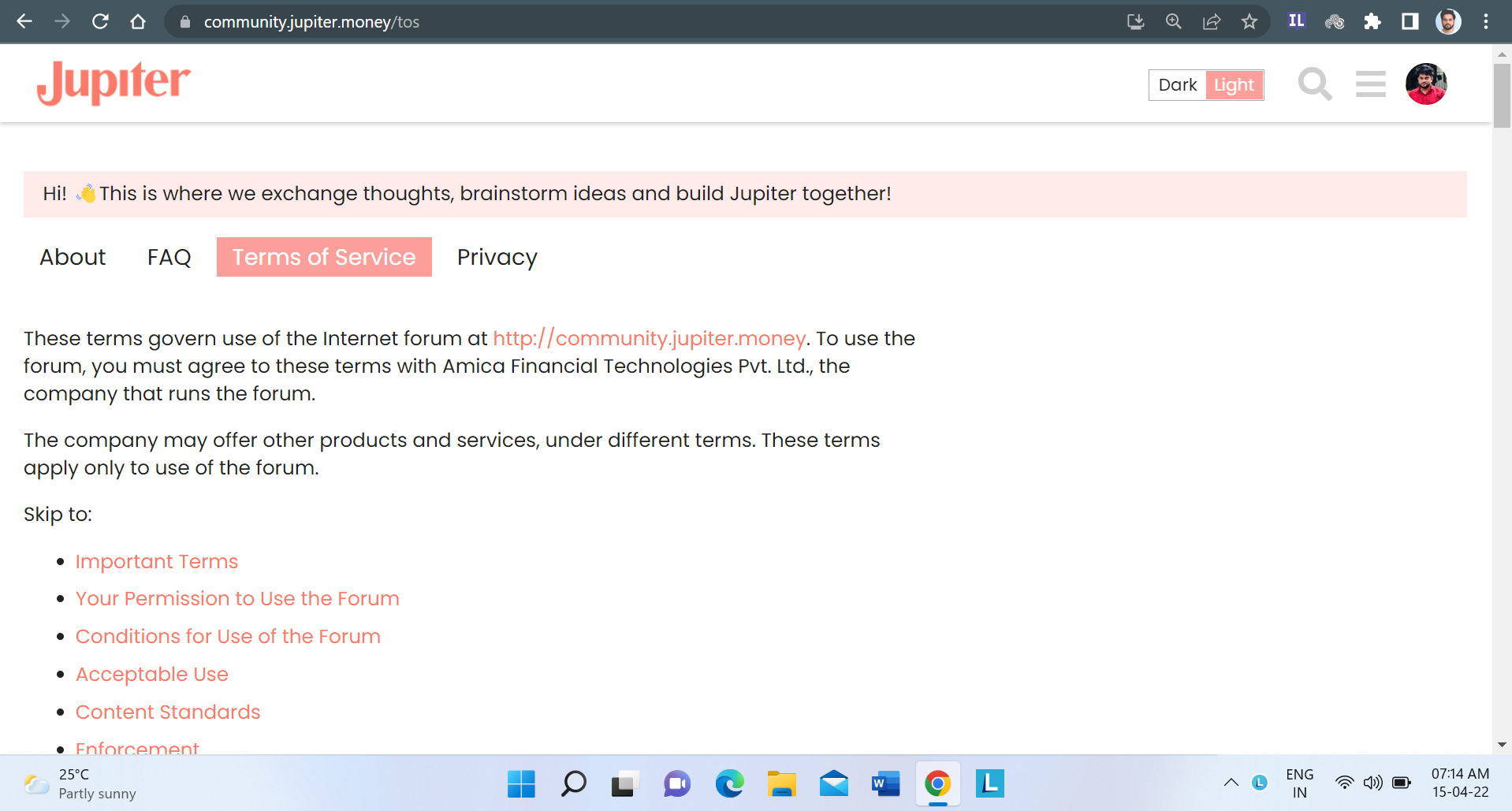 The Terms of Service page is appearing to be blank when used ‘Space View’ Theme.